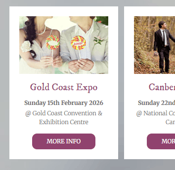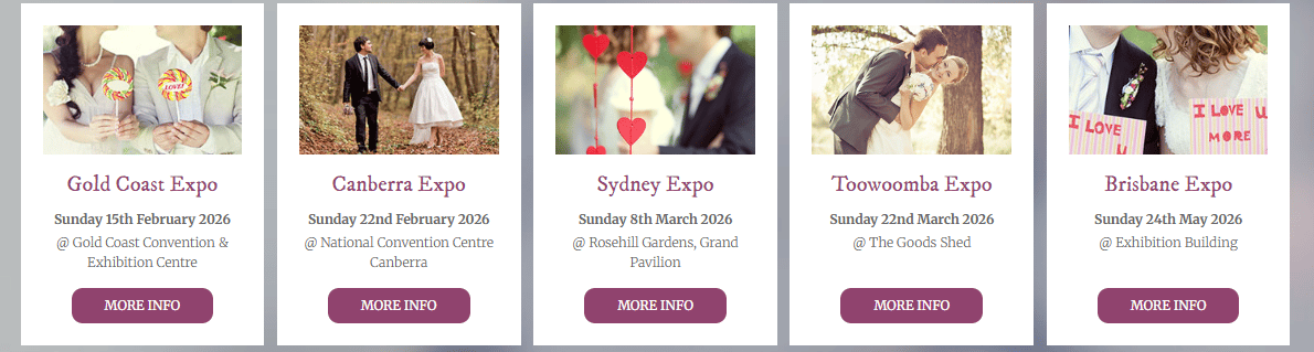 In addition, Your Local Wedding Guide Expos are hosted three times annually in Brisbane and Canberra, and twice a year in Sydney, the Gold Coast, and Toowoomba. Every engaged couple attending an expo receives a complimentary copy of the latest magazine, ensuring they have all the inspiration and contacts they need at their fingertips.